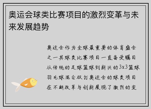 奥运会球类比赛项目的激烈变革与未来发展趋势